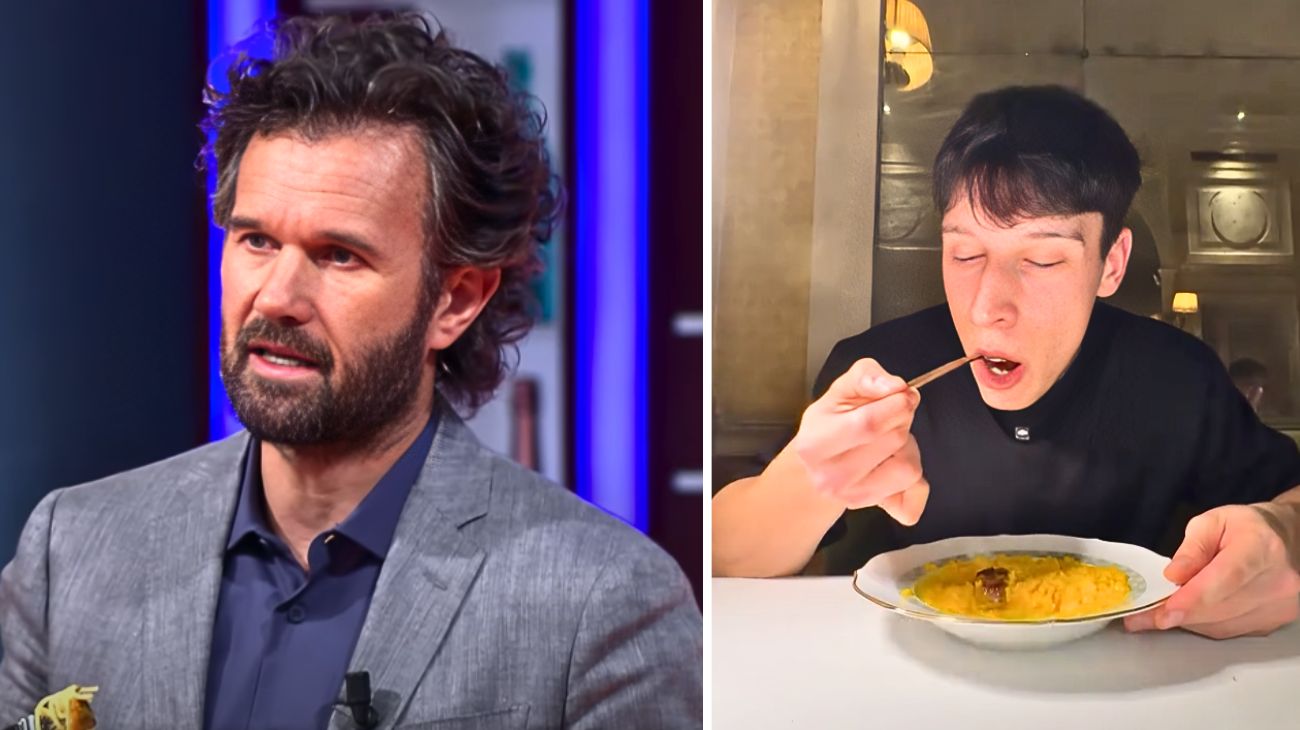 Tra i piatti assaggiati, Zini ha definito l’insalata russa caramellata come “uno dei migliori piatti mai mangiati”, una vera sorpresa tra dolcezza e acidità, croccantezza e cremosità. Ha poi apprezzato il lievitato caldo servito per fare scarpetta in un fondo vegetale delicatissimo, e ha trovato interessante il tuorlo d’uovo marinato con verdure di contorno, un’ode alla tecnica e all’equilibrio. Ma proprio quando si è arrivati al celebre riso di Cracco, la narrazione ha preso una piega diversa.