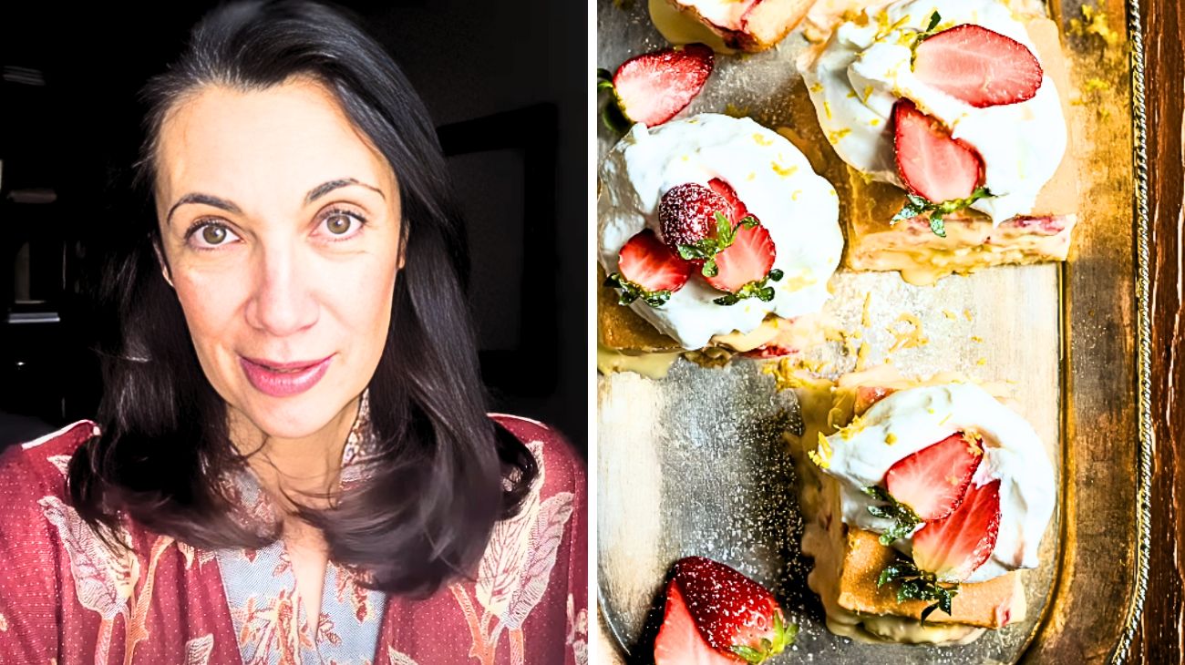 Pan di Spagna, gelato alla crema, panna montata fresca e fragole: quattro strati, tre minuti, zero stress. “Facile, buono, bello”, scrive lei. E in effetti lo è. Csaba Dalla Zorza, volto noto di Cortesie per gli Ospiti su Real Time, autrice di libri come La governante, torna con un’idea brillante: un dessert da servire in giardino, in terrazzo o anche sul divano, con un bicchiere di prosecco accanto.