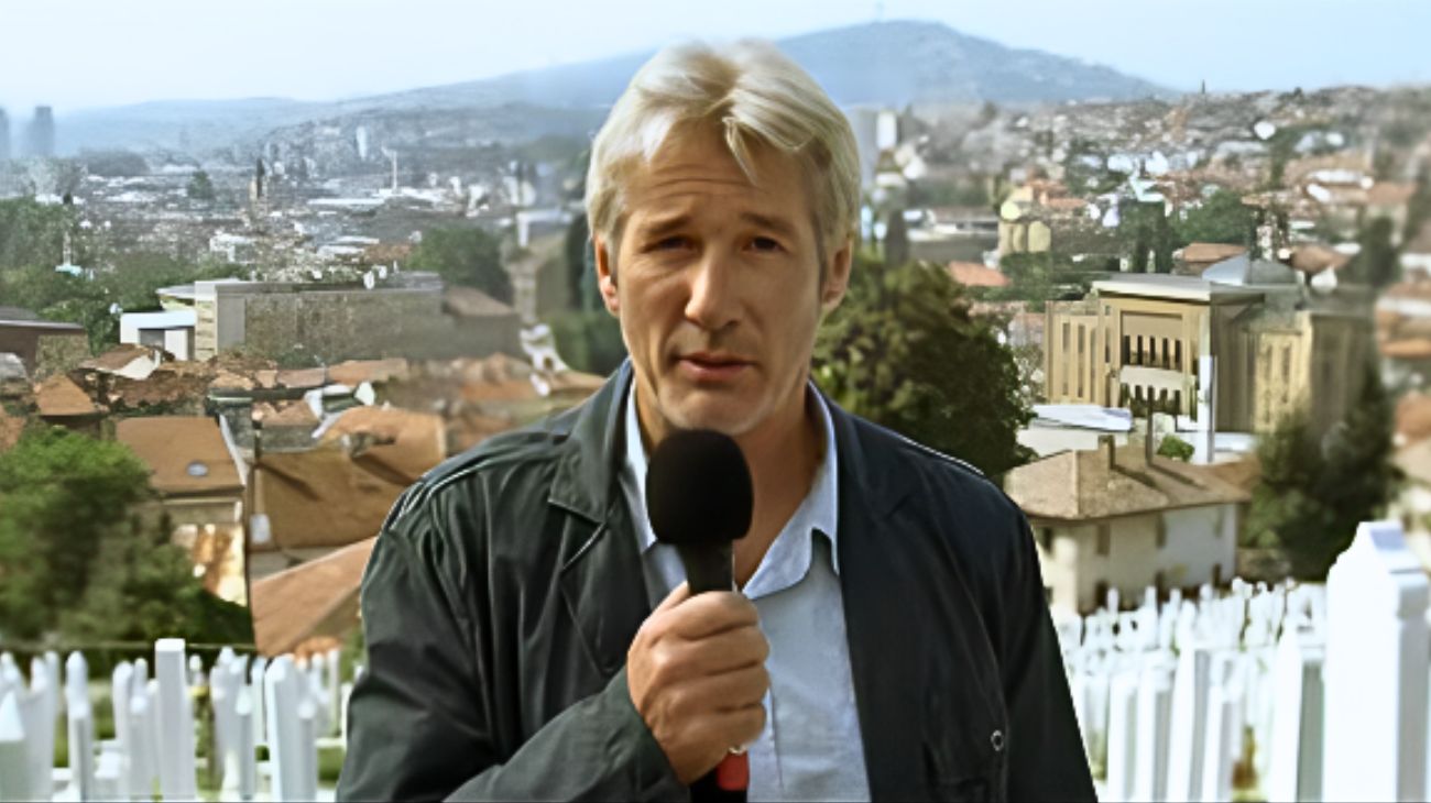 Sullo sfondo, la Bosnia post-guerra e un’Europa ancora traumatizzata. In primo piano, la disillusione di chi ha creduto nel giornalismo come missione. Simon Hunt (Gere), un tempo volto noto delle news internazionali, ha perso tutto dopo un crollo nervoso in diretta. Oggi vaga tra piccole emittenti, consumato da colpe e fantasmi. Con lui, il vecchio cameraman Duck (Terrence Howard) e Benjamin, un giovane reporter alle prime armi (Jesse Eisenberg). I tre si lanciano in una missione ai limiti dell’assurdo: intervistare, e forse catturare, il nemico pubblico numero uno dei Balcani.
