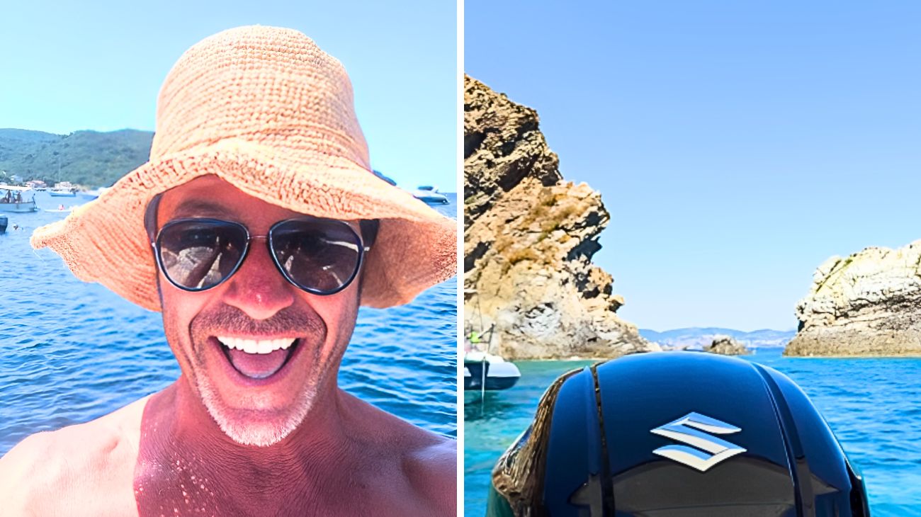Paolo Conticini è uno di noi: non ha bisogno di resort da mille e una notte o mete esotiche per sentirsi in vacanza, gli basta l’Isola d’Elba in Toscana, un cappello di paglia, una barca e un piatto di linguine allo scoglio servito in una ciotola di plastica. E basta uno sguardo alle sue storie Instagram per capirlo.
